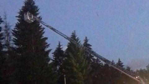 На помощь попугаю пришла пожарная машина с лестницей