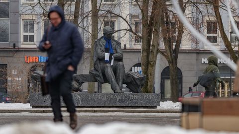 Около десяти памятников государственным и культурным деятелям в центре Таллинна будут украшены ко Дню независимости сине-черно-белыми шарфами. rus.err.ee »