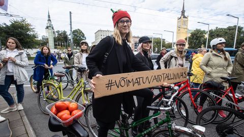 Передвигаться по Таллинну на велосипеде небезопасно и неудобно, считают участники протеста, собравшиеся в пятницу у столичной мэрии. rus.err.ee »