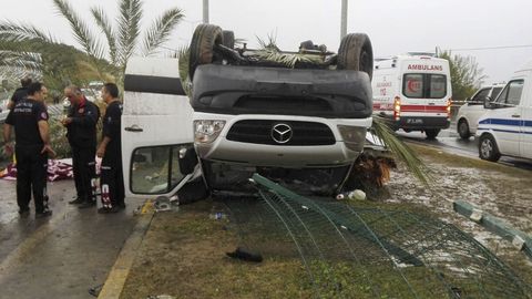 В районе Аксеки провинции Анталия в Турции перевернулся автобус с туристами, передает Anadolu.
