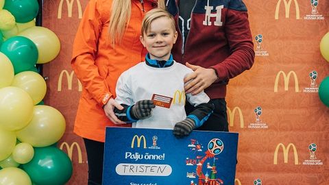 Восьмилетний фанат футбола из Тарту Тристен Кооль в рамках кампании McDonald’s «Проводи звезду на стадион» вместе со своим отцом Кристьяном отправится в июле этого года в Москву на Чемпионат мира по футболу, где он вместе с другими 132 детьми проводит на стадион футболистов из 50 стран.