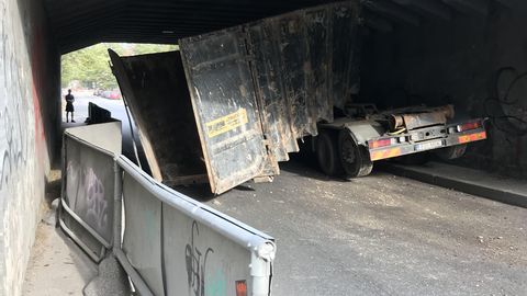 Сегодня около 10 часов утра в Таллинне на улице Роху под железнодорожным виадуком застрял грузовик.
