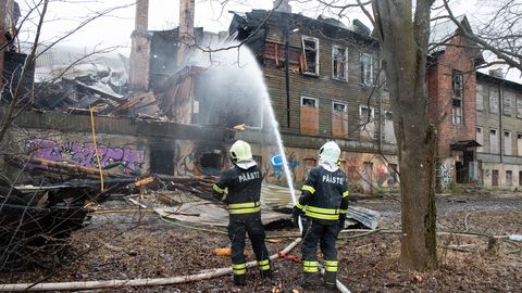 В Таллинне в Копли на 5-й линии горит заброшенный жилой дом царских времен. Здание очень сильно пострадало.