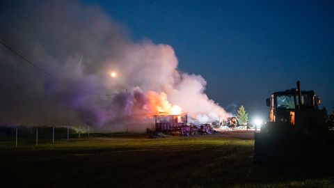 Сегодня в 00:30 Спасательный департамент сообщил, что в деревне Ээсмяэ волости Сауэ горит металлический ангар. Вскоре загорелось и расположенное рядом строение бани. Оба строения потушены, но сегодня утром было видно, что огонь причинил много вреда.