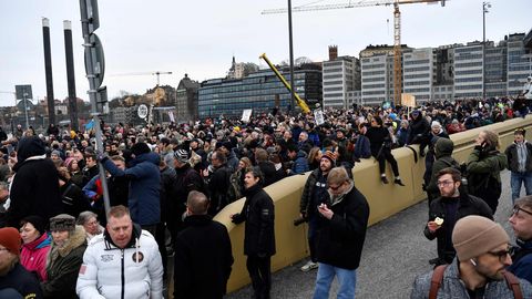 В субботу шведская полиция разогнала несколько сотен человек, которые собрались в центре Стокгольма на акцию протеста против введенных правительством коронаограничений.