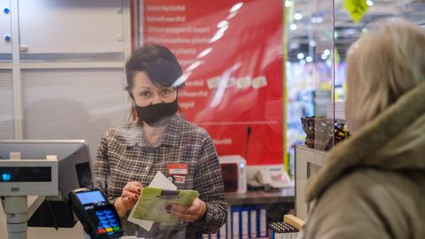 Сотрудница инфоленты Rimi в пярнуском Kaubamajakas Аннели Рейнарт не думает с горечью о тех, кто протестует, когда им приходится надевать маску в магазине на десять минут во время покупок, хотя она вынуждена ходить в ней целый день.