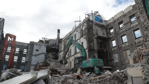 В центре Таллинна полным ходом идет снос бывшего здания Академии наук, и на сегодня от него остался лишь фасад со стороны бульвара Эстония и Театральной площади. Работы по сносу во дворе близятся к завершению, пишет Postimees.