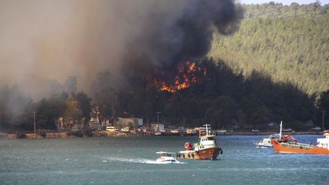 Из-за лесных пожаров людей начали эвакуировать из трех пятизвездочных отелей в турецком Бодруме. Решение выселить людей из номеров было принято в профилактических целях.